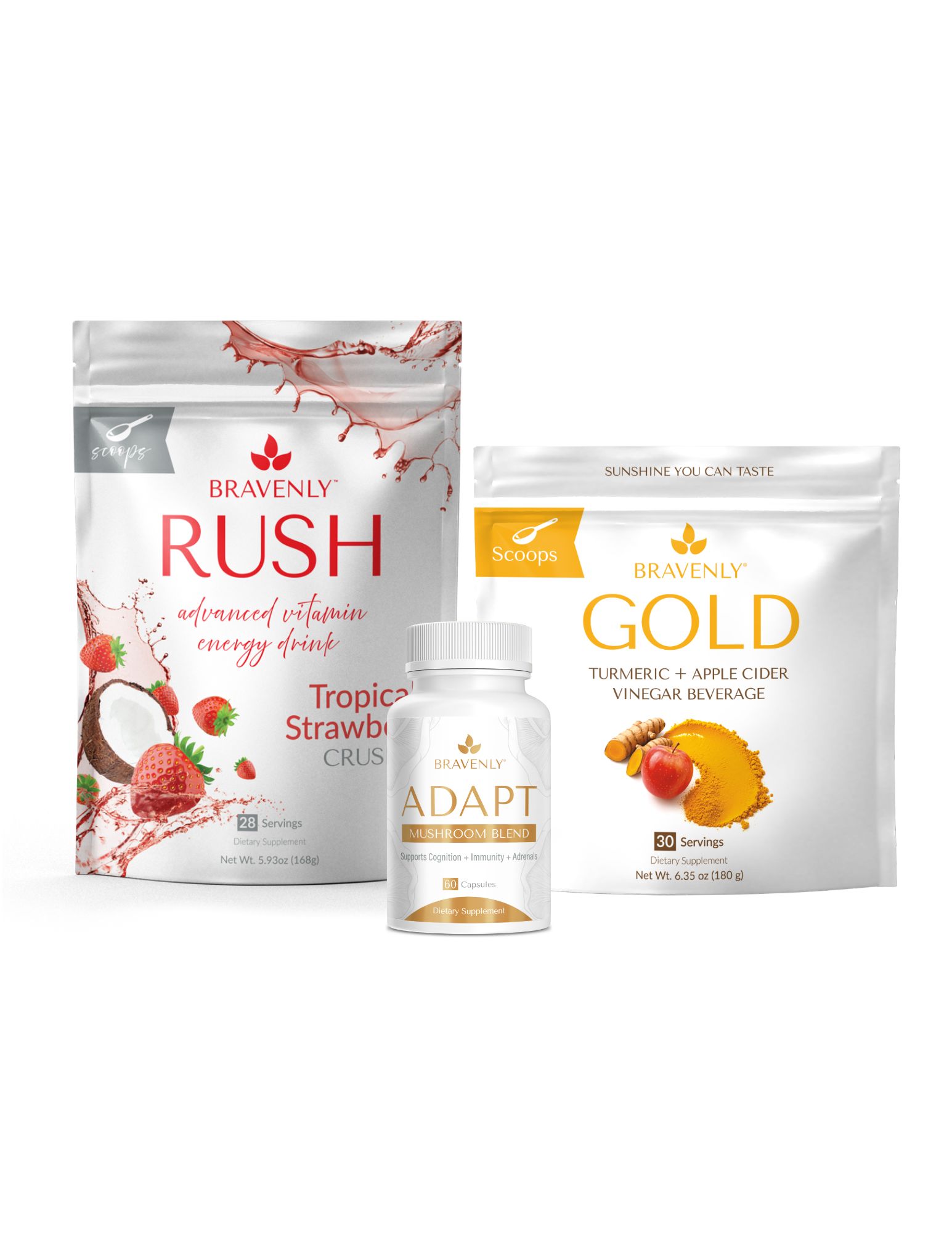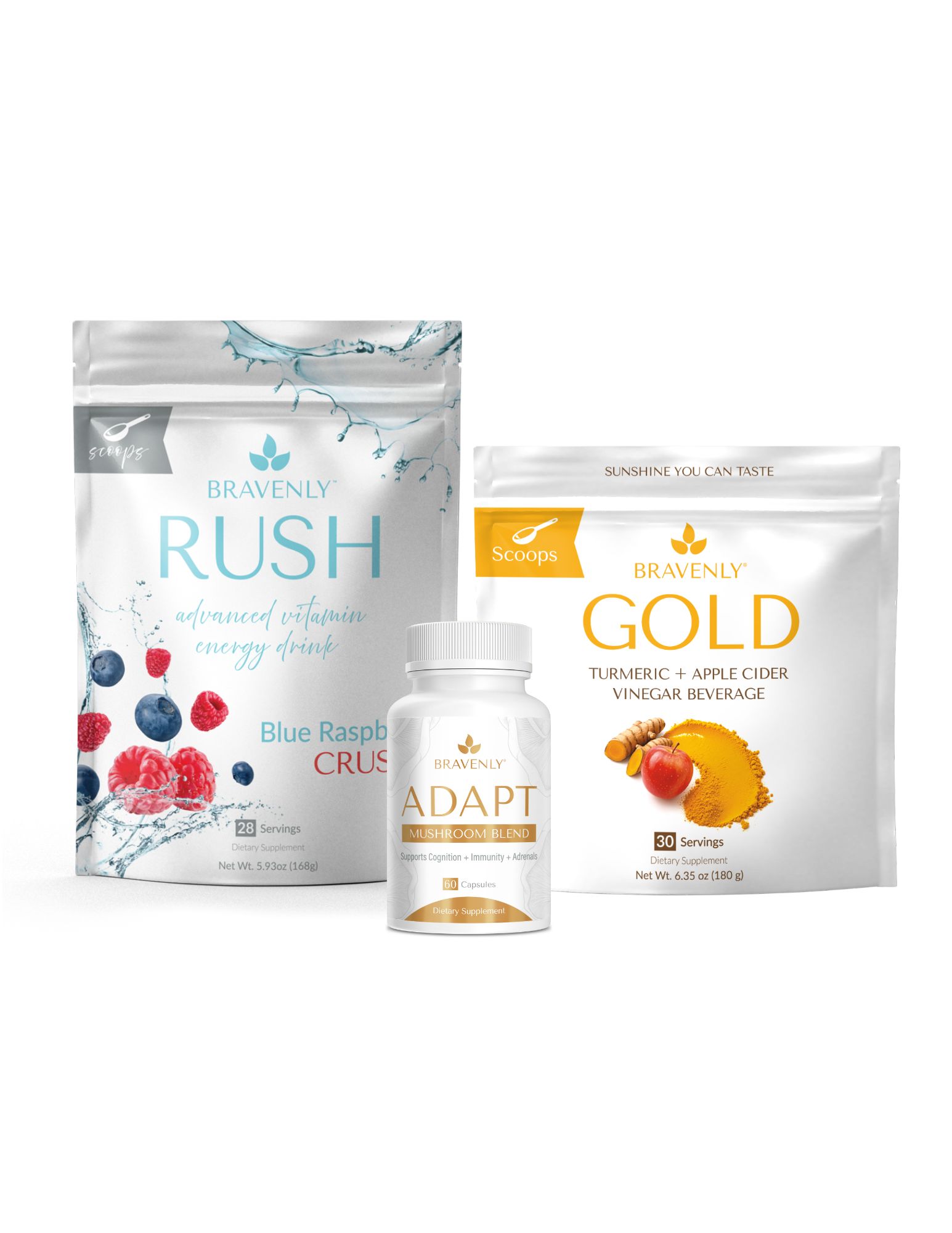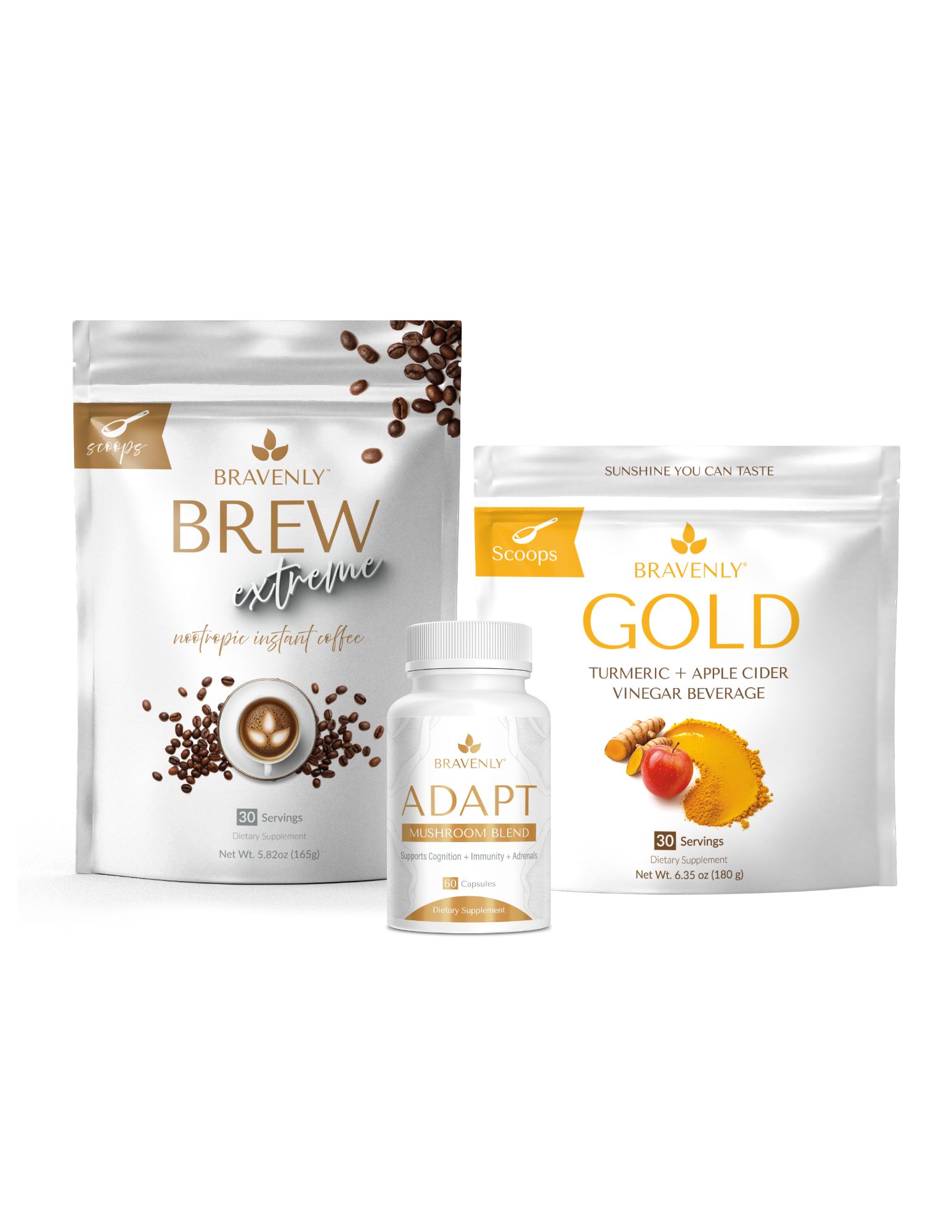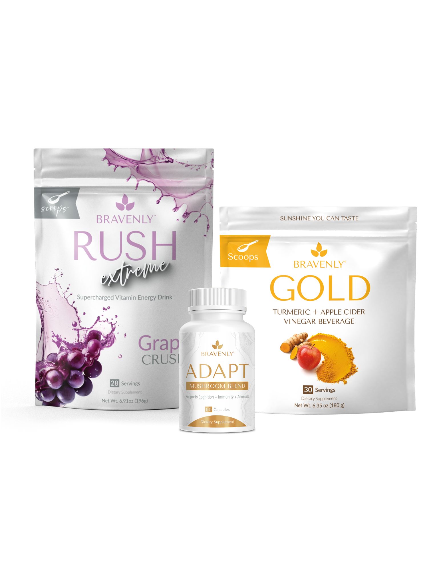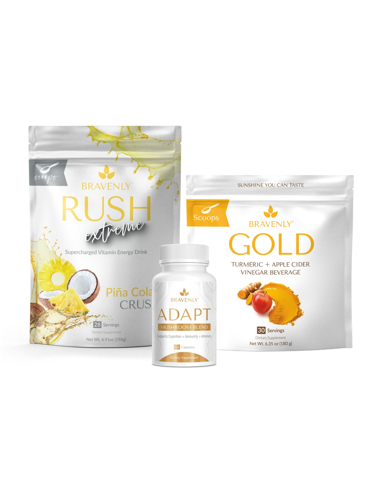 Included: Adapt, Gold (scoops or capsules), and your choice of Ignite, Rush, Rush Extreme, or Brew Extreme