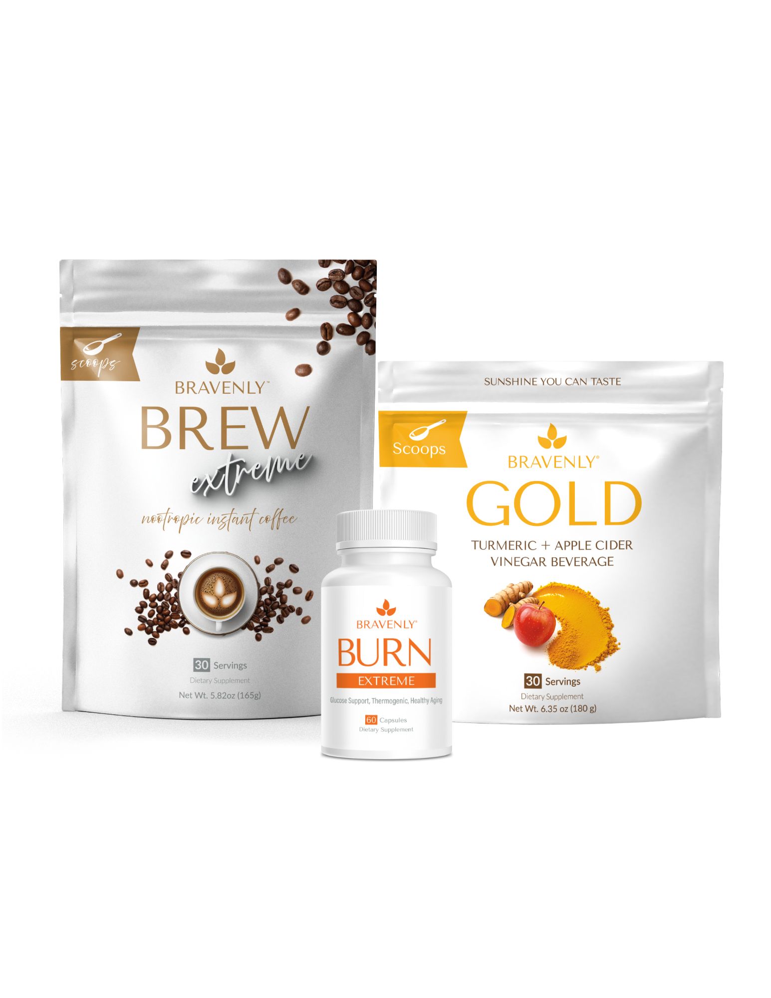 Included: Burn Extreme, Gold, and your choice of Rush Extreme, or Brew Extreme
